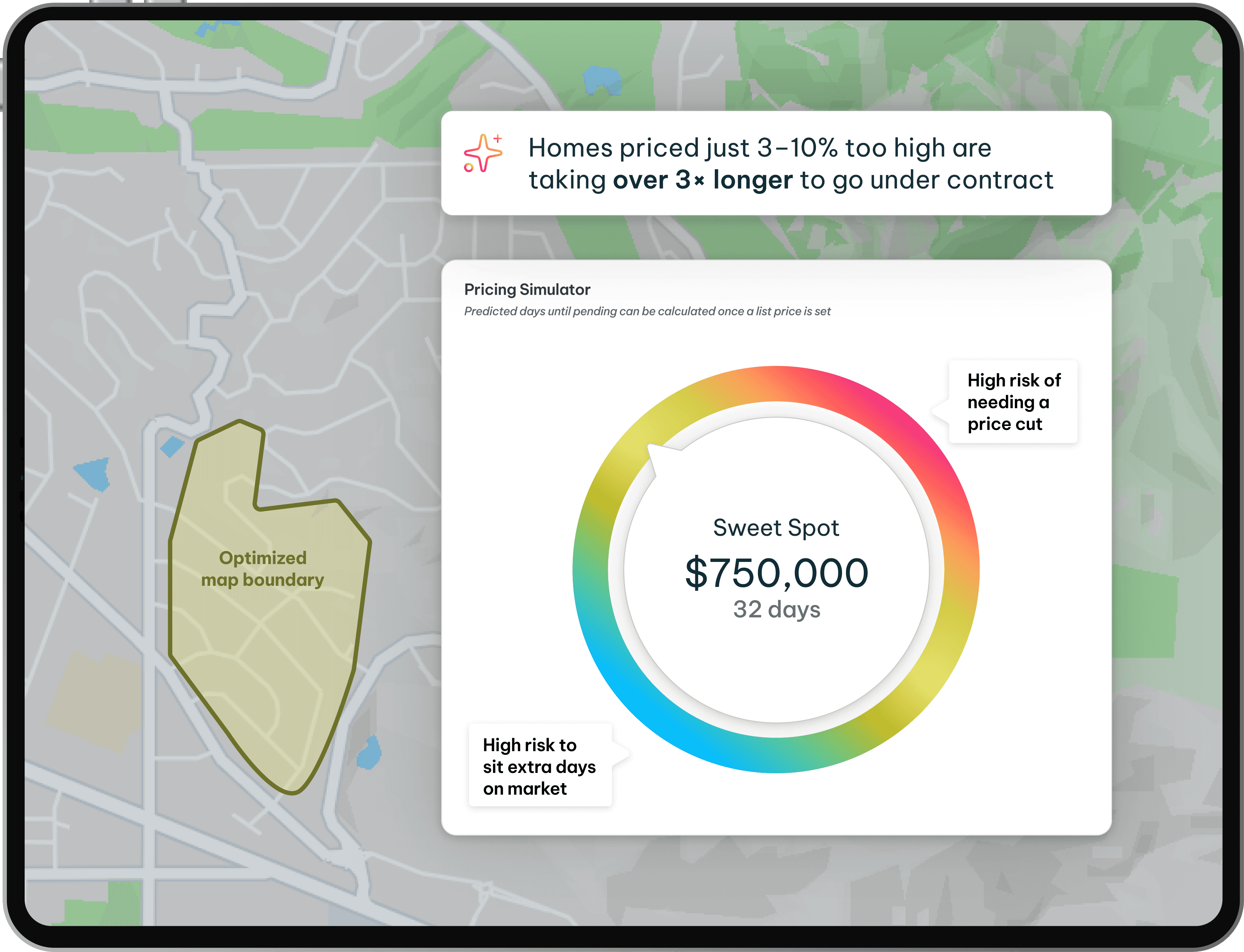 Stairtop lets you simulate different pricing scenarios to show how price impacts time on market, buyer behavior, and final outcomes—so clients understand the strategy, not just the number.